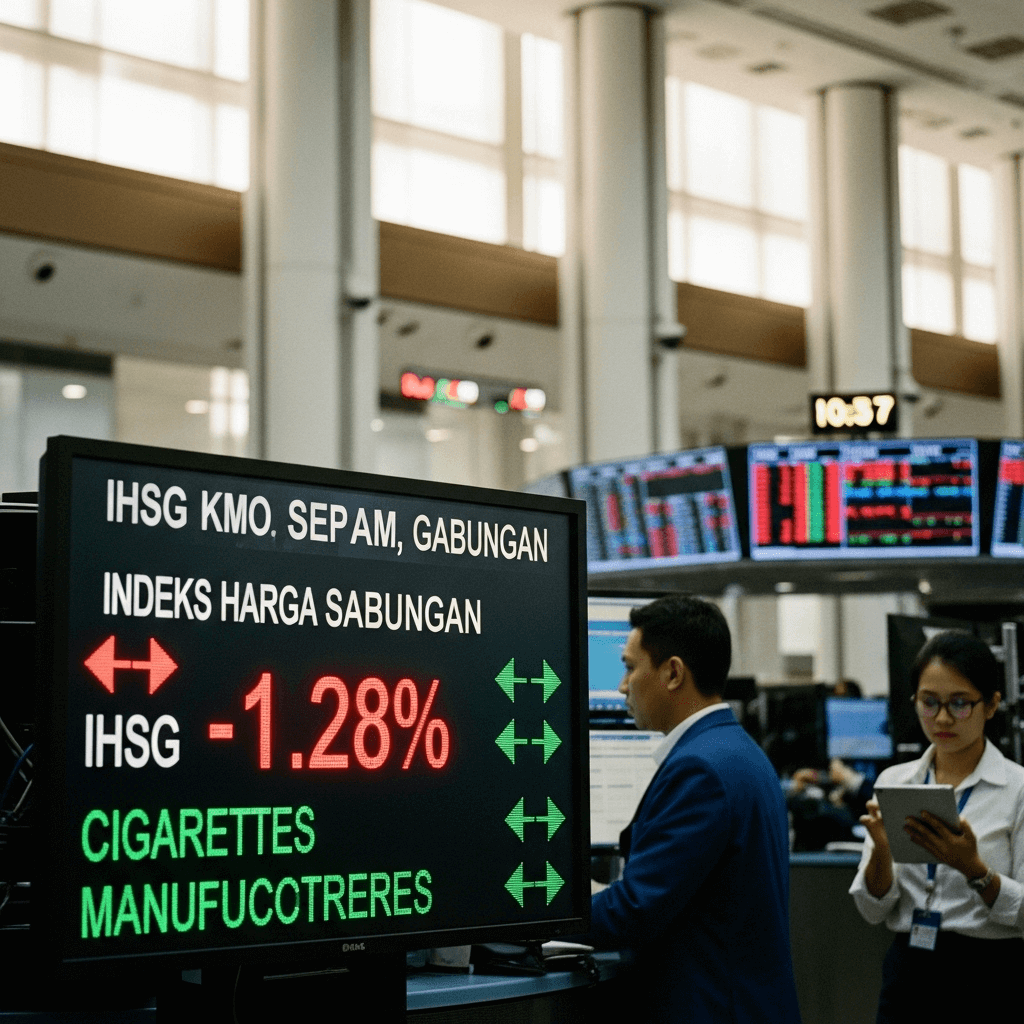 Pada perdagangan Senin, 8 September 2025, Indeks Harga Saham Gabungan (IHSG) menutup sesi dengan penurunan signifikan sebesar 1,28% ke level 7.766,84. Penurunan IHSG ini dipicu kabar seputar perombakan kabinet yang mengundang reaksi pasar negatif. Namun, saham-saham emiten rokok justru berhasil menunjukkan performa positif di tengah tekanan tersebut.